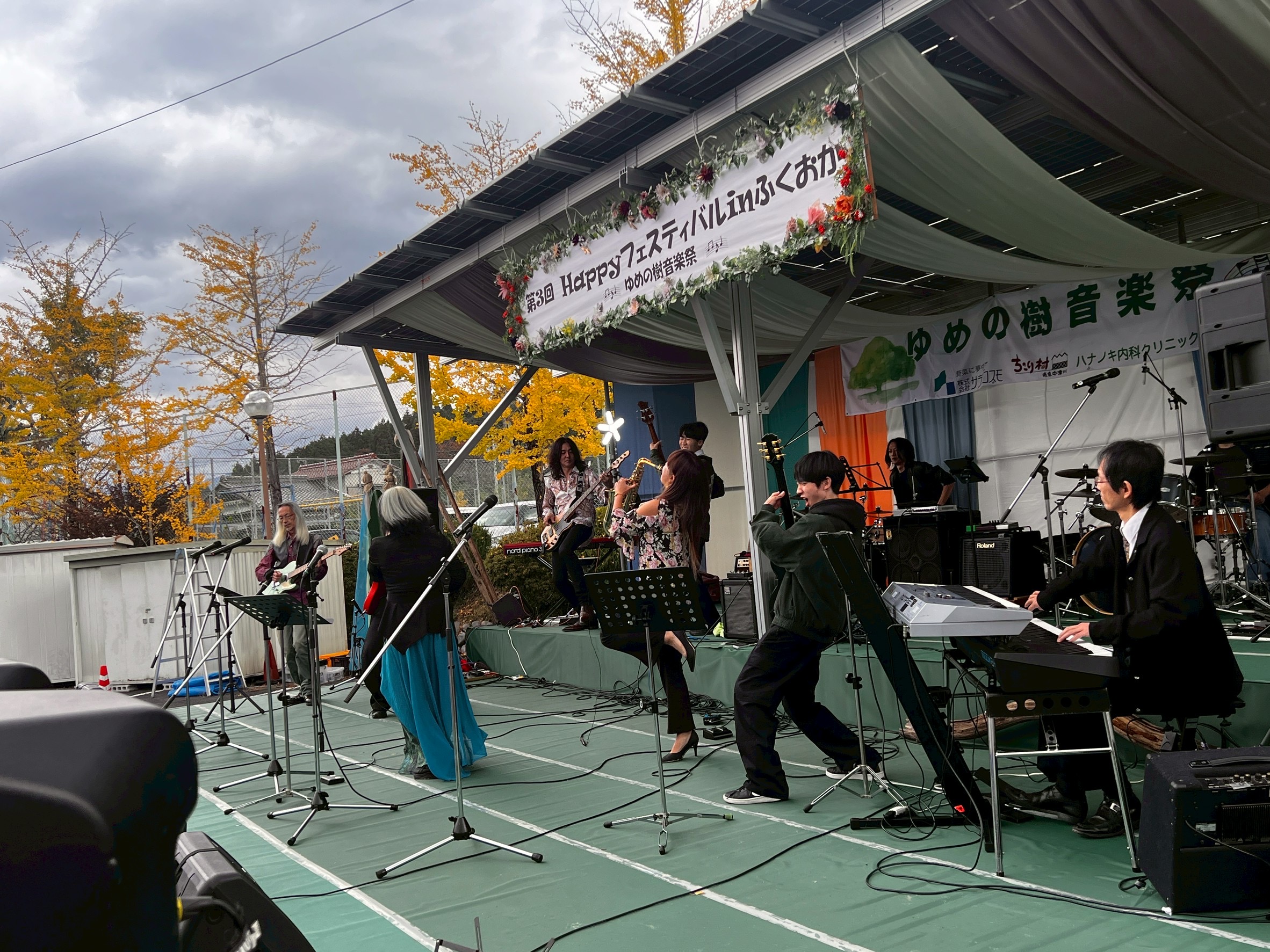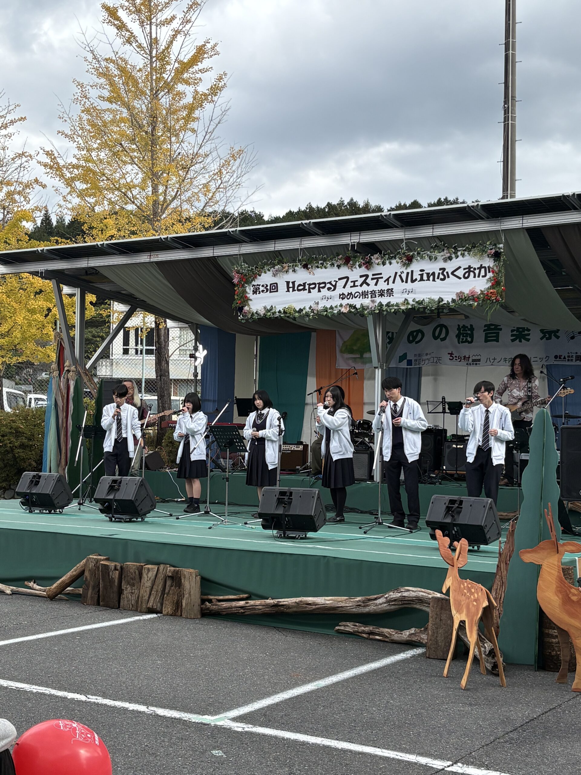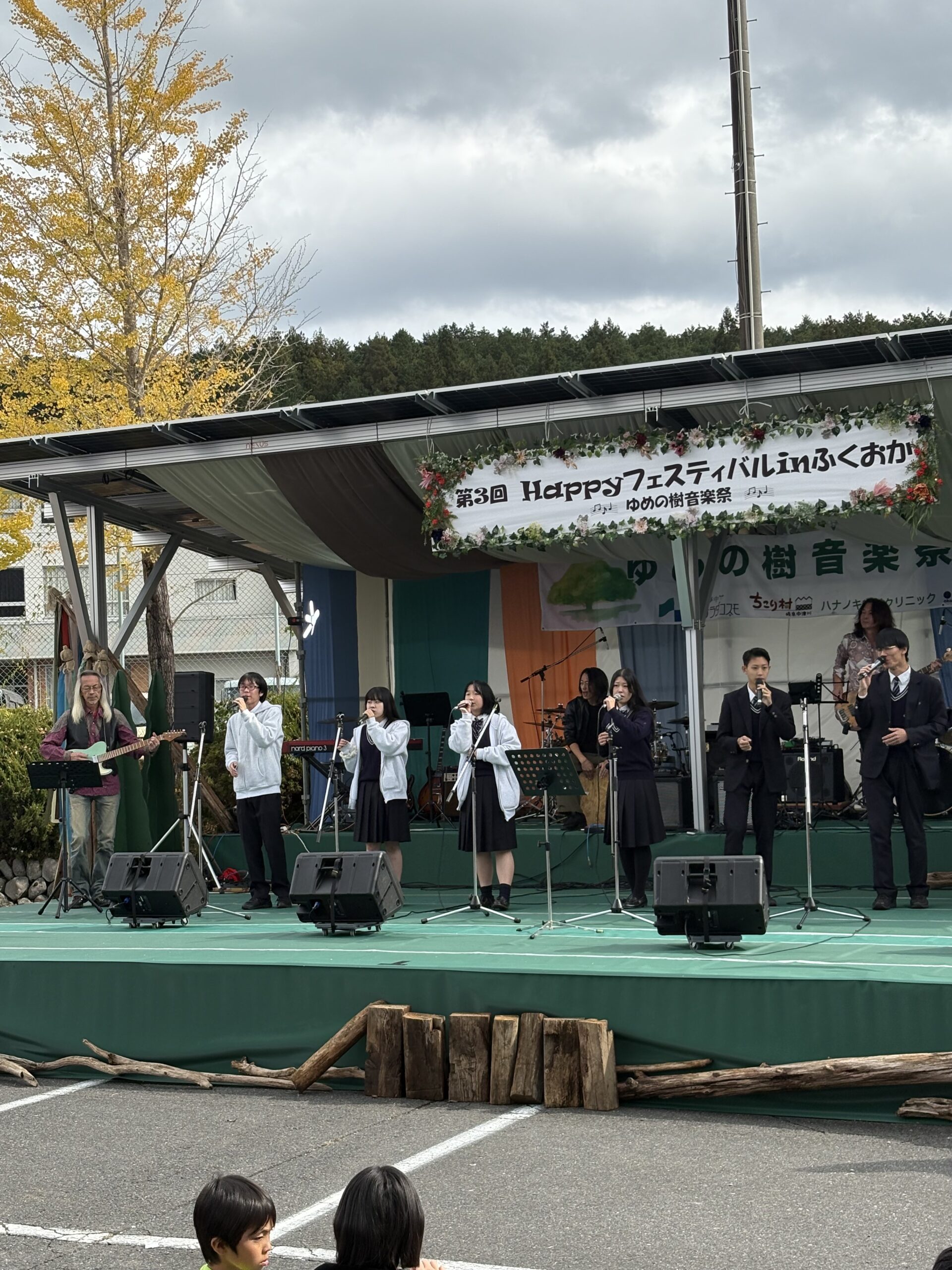アカペラ部とギター部が11/2(日)中津川ふくおか町で開催された「Happyフェスティバル」~夢の樹音楽祭~プロミュージシャンと夢の共演!でライブを行いました。