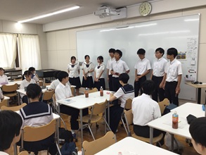 授業後には希望者に対して、現役高校生との交流会を行いました。蛍雪コースのクラスの雰囲気や、勉強・宿題についてなど、いろいろな質問に高校生が答え、和やかな雰囲気のもと、中3生と高校生との交流会が行われました。