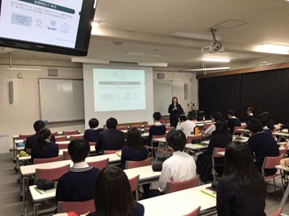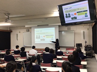 1年商業科の公共の授業の一環で、金融経済教育講座を実施しました。SMBCコンシューマーファイナンスの田中さんにお話をしていただきました。