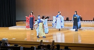 第Ⅱ部は、被服科3年生によりファッションショー。ショーの企画・構成もすべて自分たちで作り上げました。被服科3年間の集大成として、和・洋の衣装を着こなし、来場した生徒・その他大勢の観客を魅了していました。