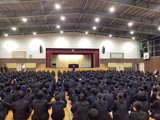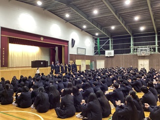 修了式後、この半年間に活躍した部活動や生徒グループへの表彰伝達、また今年度で本校を離職される先生方の離任式を行い、最後のお話をいただきました。