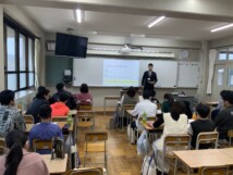 説明会では、自己推薦入試の概要や出願に向けた準備についての説明に加え、実際の試験に向けた対策講座も実施しました。特に、作文の書き方については、テーマの捉え方や構成の工夫、説得力のある文章表現のポイントなど、実践的なアドバイスが行われ、参加者の皆さんは熱心にメモを取りながら耳を傾けていました。
