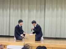 1年生は、3年生との思い出をもとにした劇を披露しました。学校生活でのエピソードをユーモアたっぷりに演じながら、最後には3年生一人ひとりに向けた感謝のメッセージを届けました。先輩への尊敬と温かい気持ちが伝わる、心のこもった発表でした。
