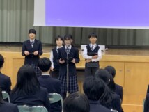 最後に、先生方から3年生へ向けたメッセージが贈られました。これまでの成長をたたえる言葉や、これからの進路に向けた励ましの言葉が続き、3年生の表情には決意と感謝が浮かんでいました。