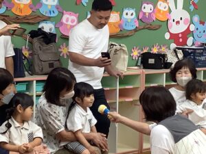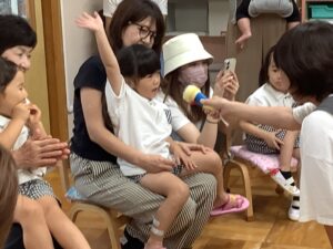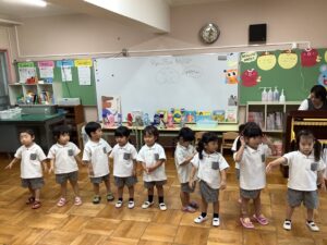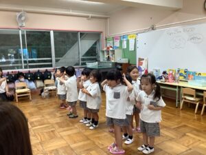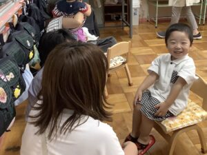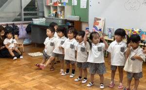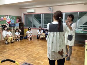 最初に いつもお部屋でお友だちや先生たちと歌っているお歌を おうちの人たちに披露🤗🎶 ♬.*゚ いつもと違う雰囲気にちょっと照れながら元気に歌ってスタート!