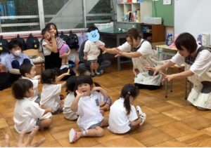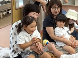 ♫げんこつ山のたぬきさんをして ジャンケン!負けたら♫一本橋こちょこちょ に可愛い笑い声がお部屋いっぱいになり、おうちの方と一緒なのでとても安心した様子でふれあい遊びを楽しみました 🥰