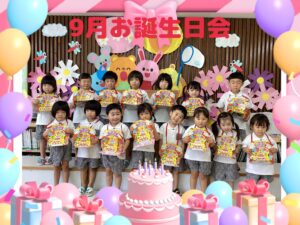14人の9月生まれのお友だち!7月にお休みしていた7月生まれのお友だちが1人を合わせて 15人のお友だちのお祝いをしました〜🥰•*¨*•.¸¸♪