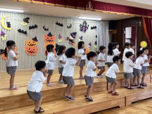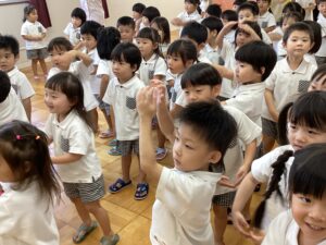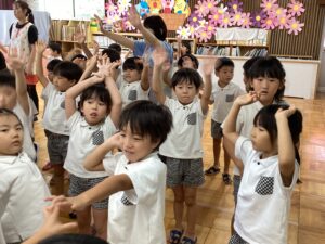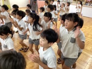 今日は 赤組さんが先生になって ♫ぼくたちぶどう🍇 を教えてくれて みんなで踊りました♪😄🤩🤭🍇