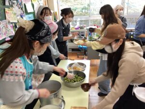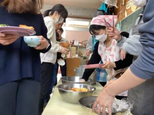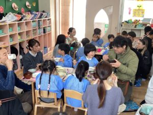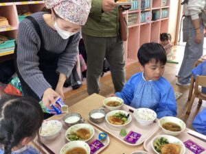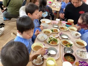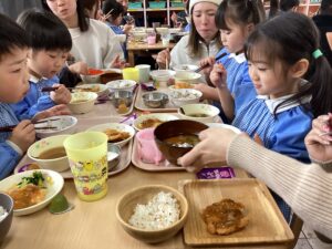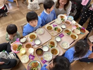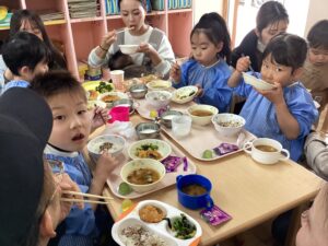 栄養士がお部屋を回ると 野菜あんかけが大好評で 子ども達が野菜をパクパ食べる姿も喜び親子で楽しいランチタイムになりました