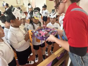 みんなお菓子を3つもらい バックに入れて帰りました⸜(⑅´ᗜ`⑅)⸝ꕤ*。゚