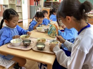 子ども達と元気に園庭を駆け回り 一緒にお給食を食べ 子ども達にとっても楽しい2日間になりました(*’▽’)