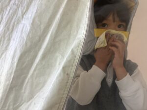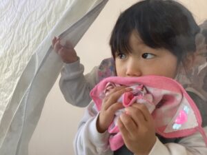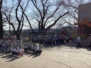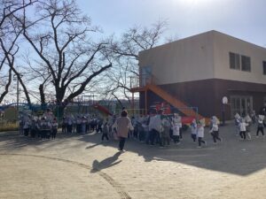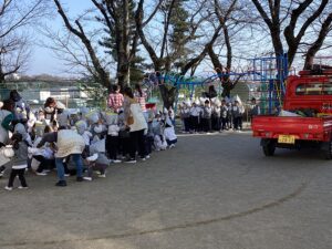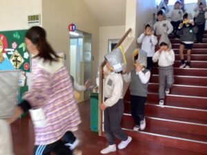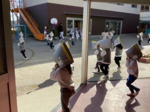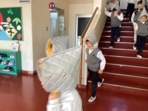 リーーンの大きなベルの音が苦手なお友だちも みんなと一緒にすぐに机の下に潜り
