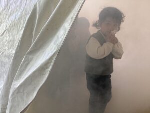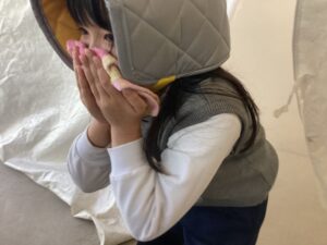 地震が起きたら……先生たちにお話を聞いて 練習をしました