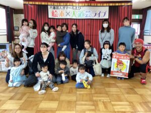 子ども達との対話を盛り込みながら 風船を使った子ども達の笑いをとる芸や ハラハラドキドキの目を釘付けにする芸……絵本の読み聞かせもしてくれました(*ˊ˘ˋ*)♡