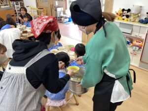 親御さんは お子さんの食べる量を確認しながら