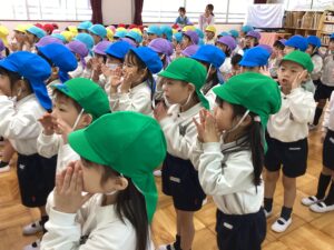 2026年04月16日(木) カテゴリ: 活動ブログ 対面式🌸 【対面式】 今日は、在園児と新入園児の「対面式」がありました🌸 ちょっぴり緊張した表情の新しいお友だちを、 お兄さん・お姉さんたちが「これからよろしくね!」と 温かい拍手と笑顔で迎えました。 「一緒に遊ぼうね」 「困った時は教えてあげるね」 お兄さん・お姉さんたちの頼もしい言葉に、 新入園児のみんなにも笑顔がこぼれました。 手遊びや歌が始まると、一緒にニコニコ。 すっかり仲良しの第一歩を踏み出せました。
