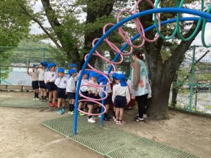 2026年04月17日(金) カテゴリ: 活動ブログ ☀️お外で遊んだよ お外遊びのルールをクラスごとで確認❣️ 先生のお話しをしっかり聞いて けがをしないように遊びます🤗 今が1番良い季節🌷 天気の良い日は、たくさんお外遊びを楽しみたいね🥰