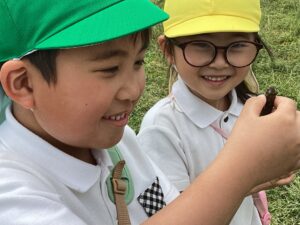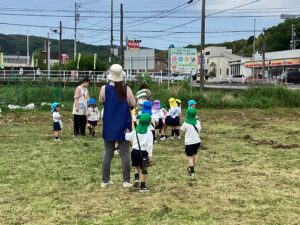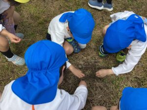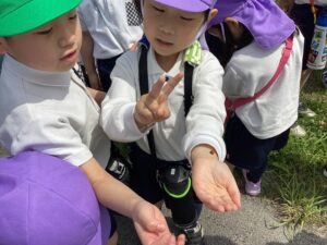 「こっちにカエルがいたよ!」「たんぽぽ!」あちこちから元気な声が響いていました。