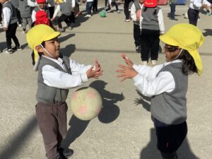 子ども達が描いた絵や、きれいな色の紙粘土で