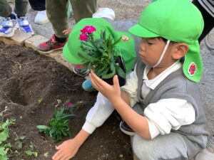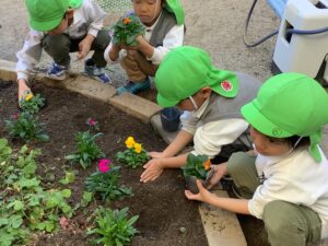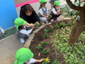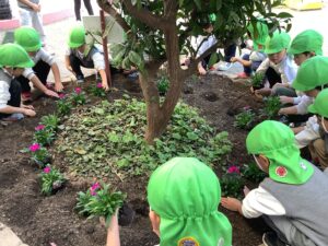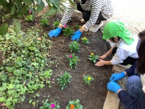 花壇の花を皆で植えたよ🌷